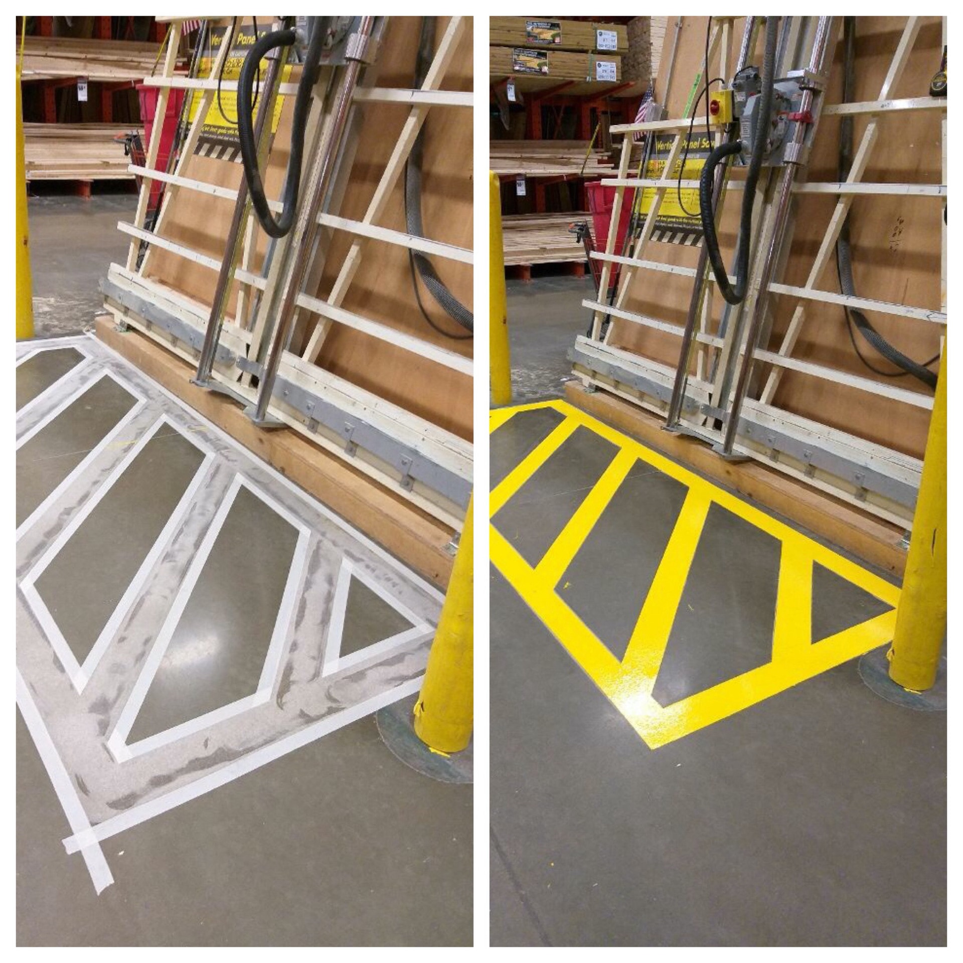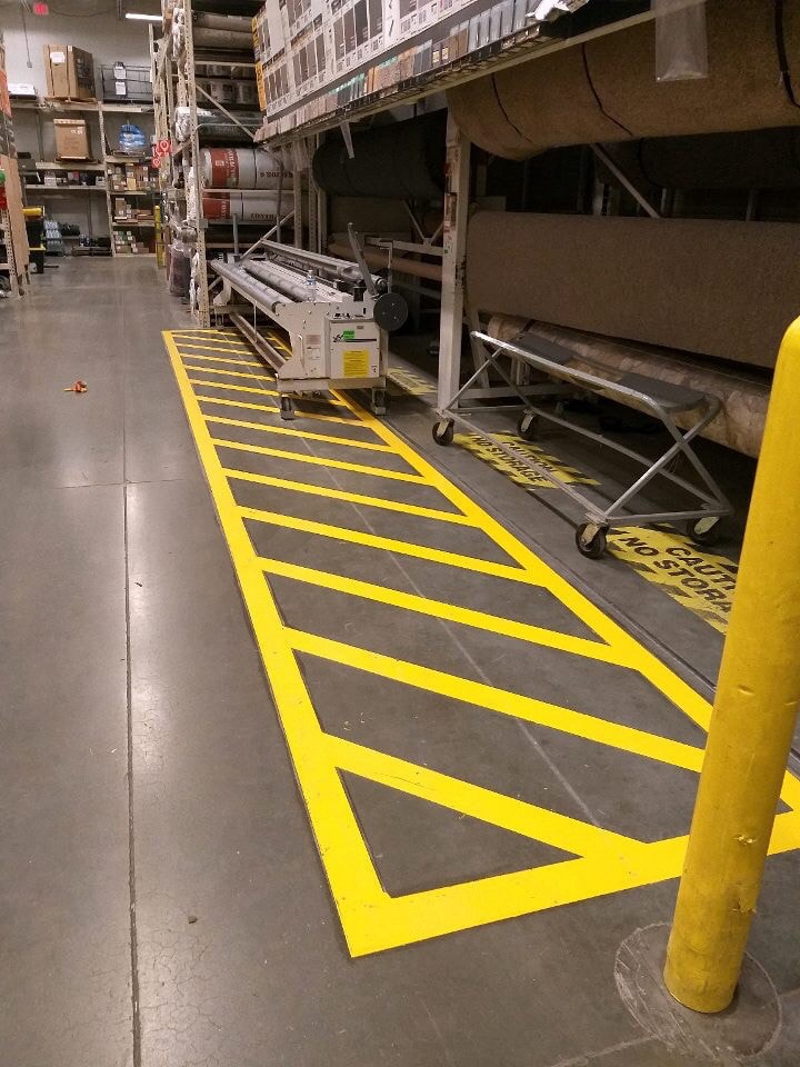 Floor marking projects require following very specific guidelines, as the safety lines are pertinent in keeping Home Depot employees and customers safe throughout the store. Painters Inc. employees arrived after store hours, removed old lines and replaced them with new ones throughout the store in a very short time span, only three nights.