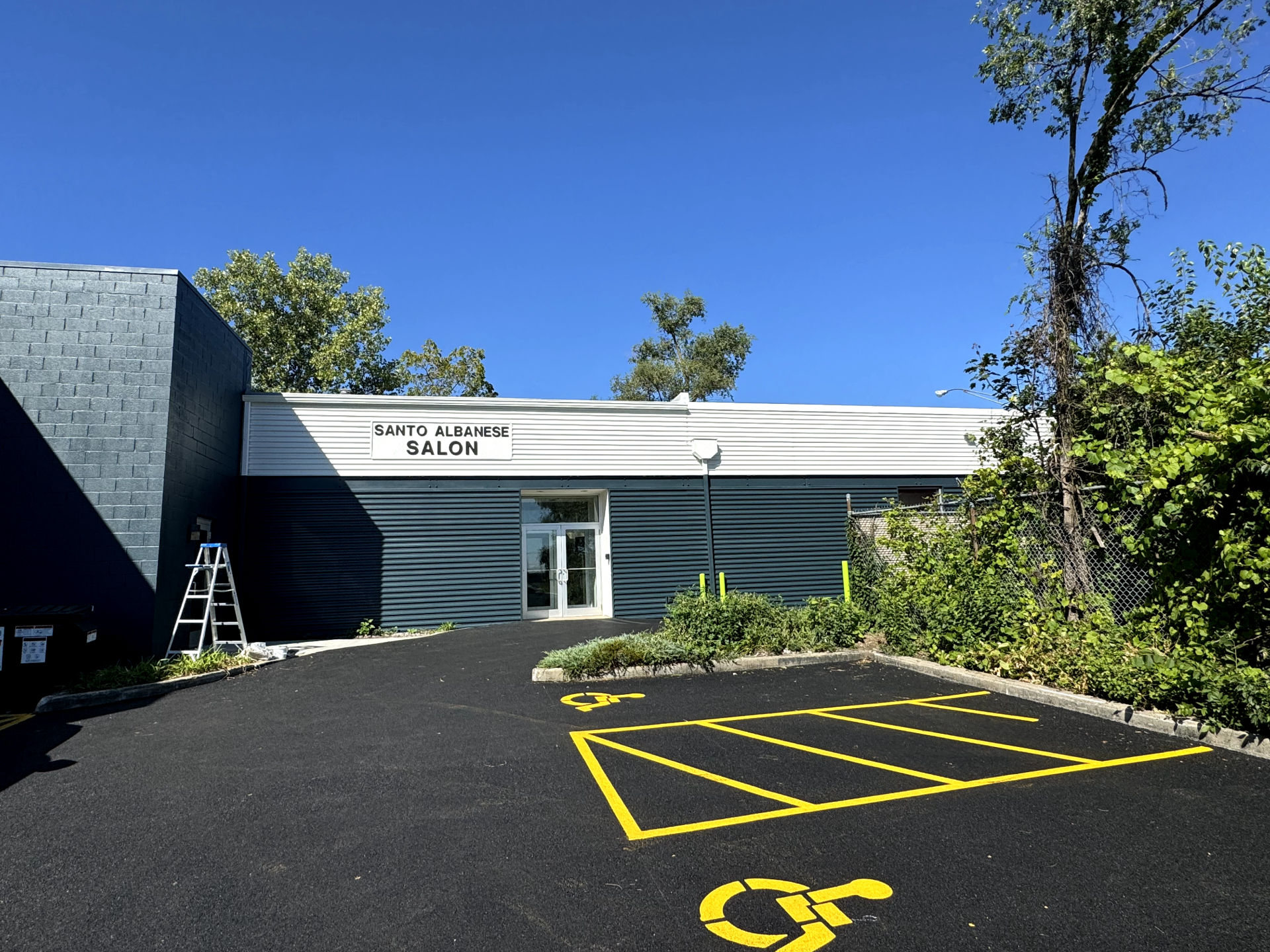 Metal siding and cinder block wall painting for commercial building