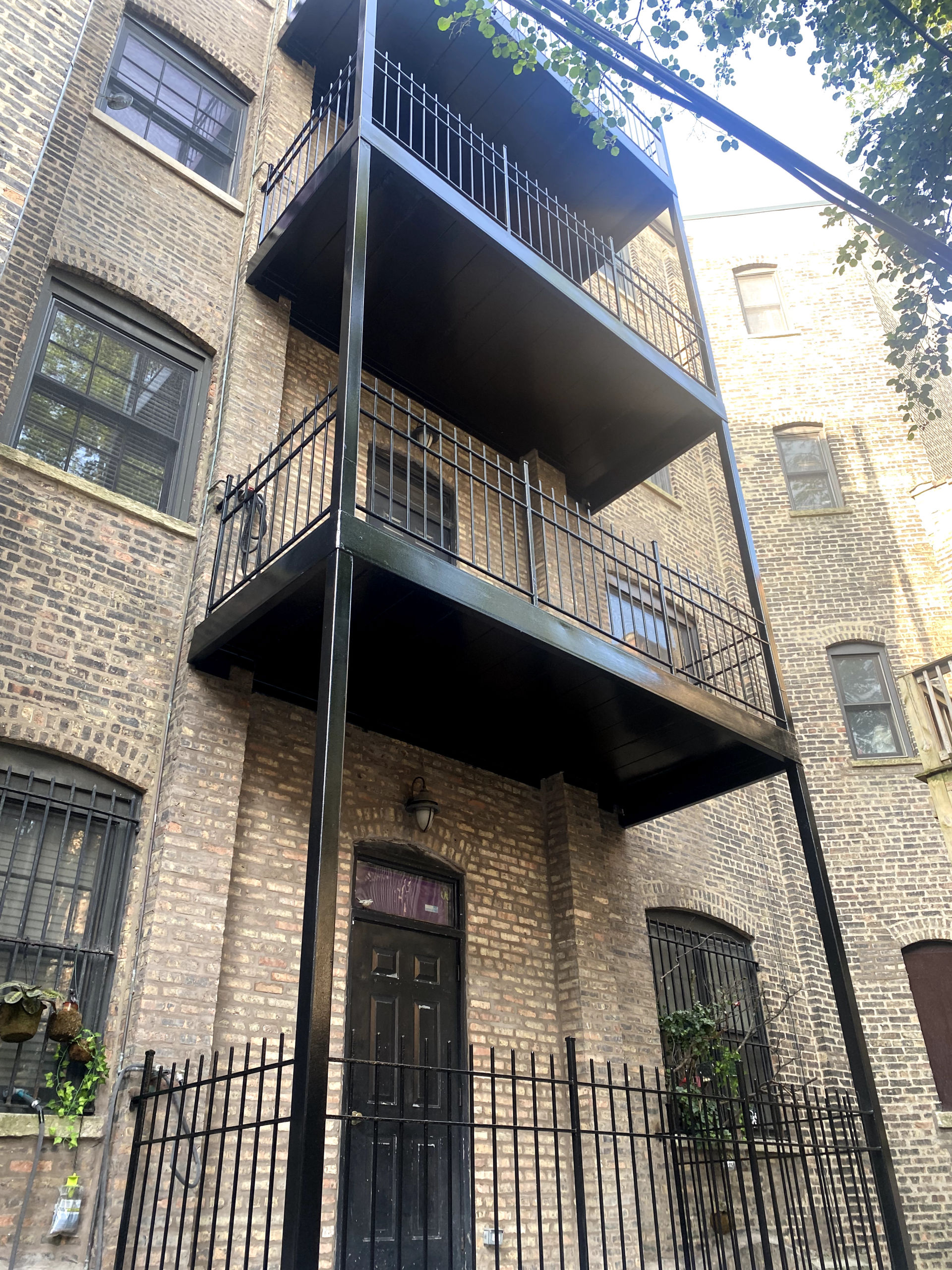 This brick apartment building in Chicago had four separate metal balconies that were in need of paint. The client also wanted the concrete floor painted, which required knowledge regarding two different types of paint that would adhere correctly to two different types of surfaces. This project also included painting metal railings, the metal perimeter around the balcony, metal posts and metal undersides.