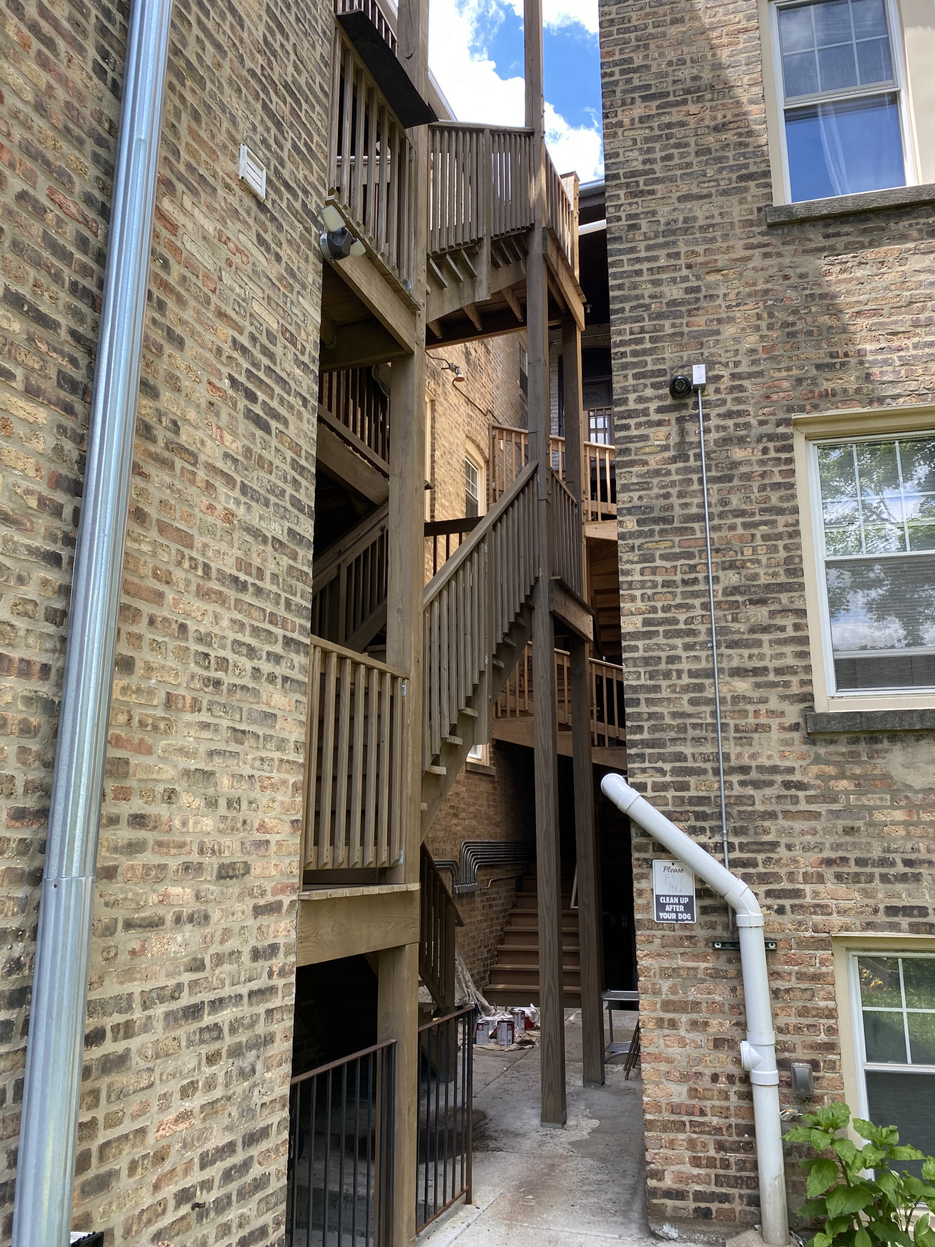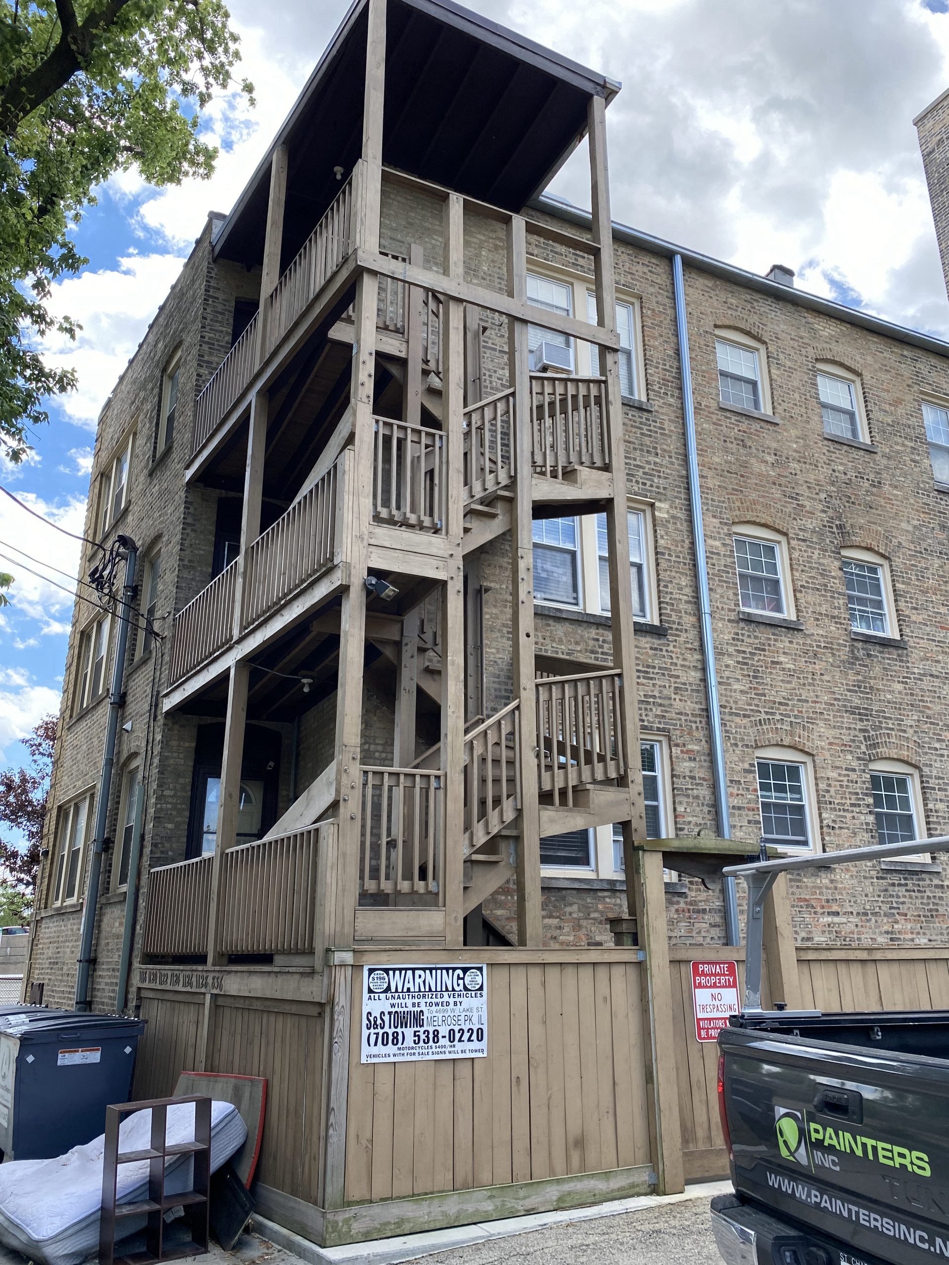 From interior walls and hallways, ceilings and baseboards, and exterior surfaces from siding to porches, HOA apartment projects can involve a variety of structures. On this Oak Park HOA, Painters Inc. was tasked with painting four staircases attached to back porches. This project required extreme attention to detail, because there were many components involved, including the floor of the porches, steps, the underside of the porch and steps and all four sides of each spindle, as well as the slats in the porches.