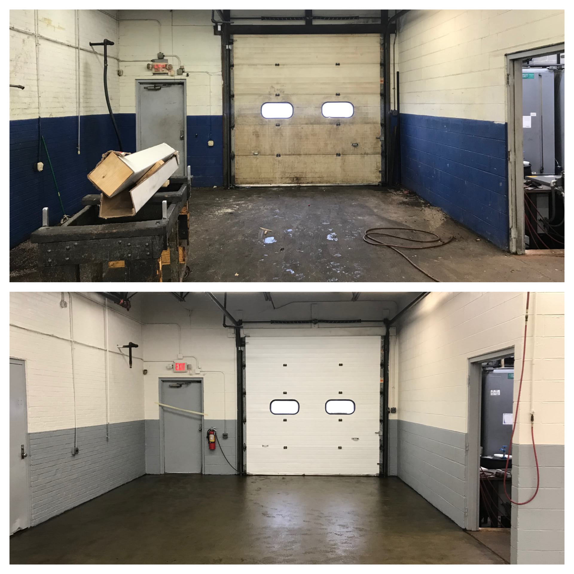 Given Painters Inc. experience with cleaning surfaces before applying fresh coats of paint, we were able to remediate grease spots in several areas, which was imperative if we were going to make good on our promise to provide a “fresh look” to the warehouse interiors. The large project, which required seven days of work, included painting oversized doors, walls, floors and doors.