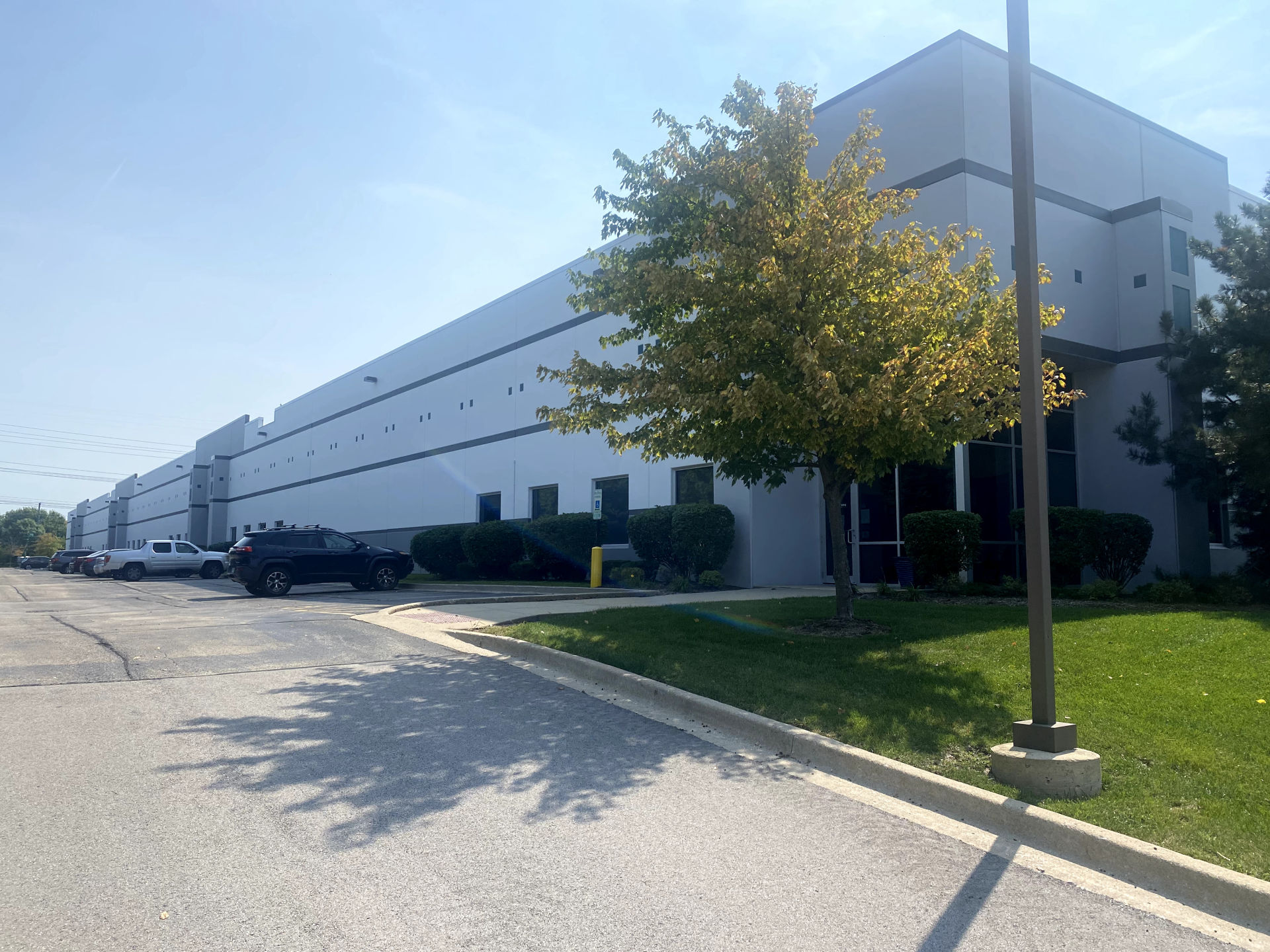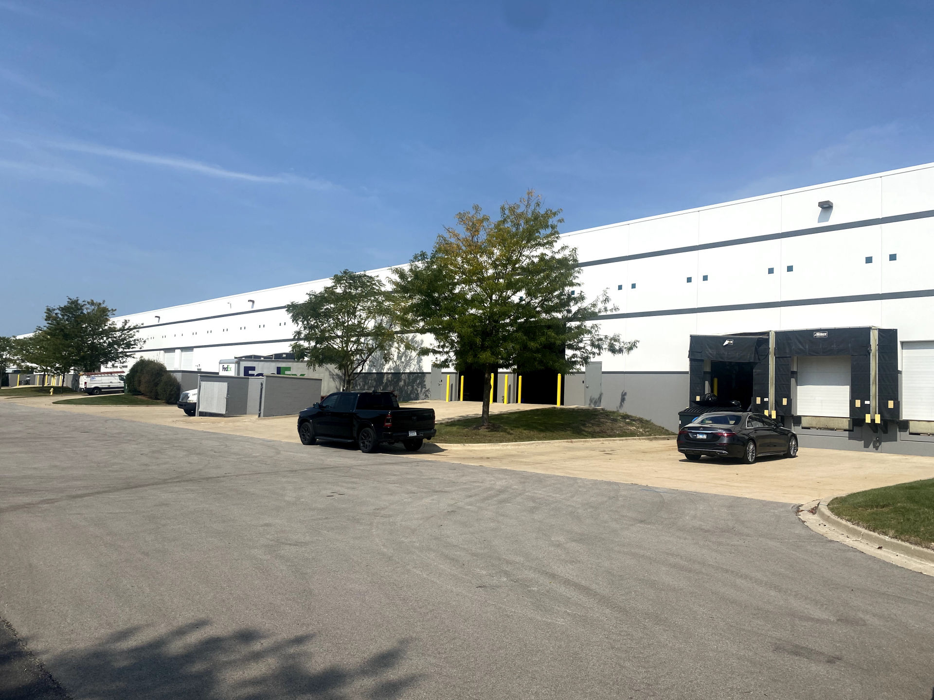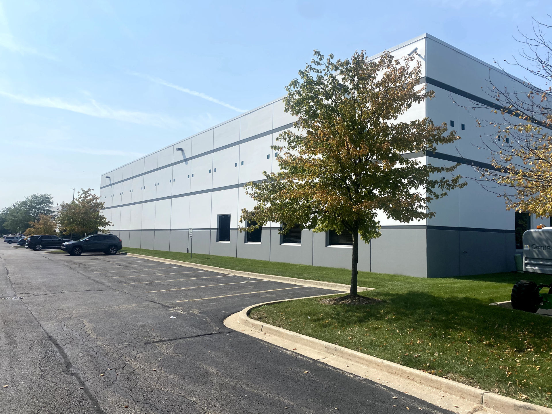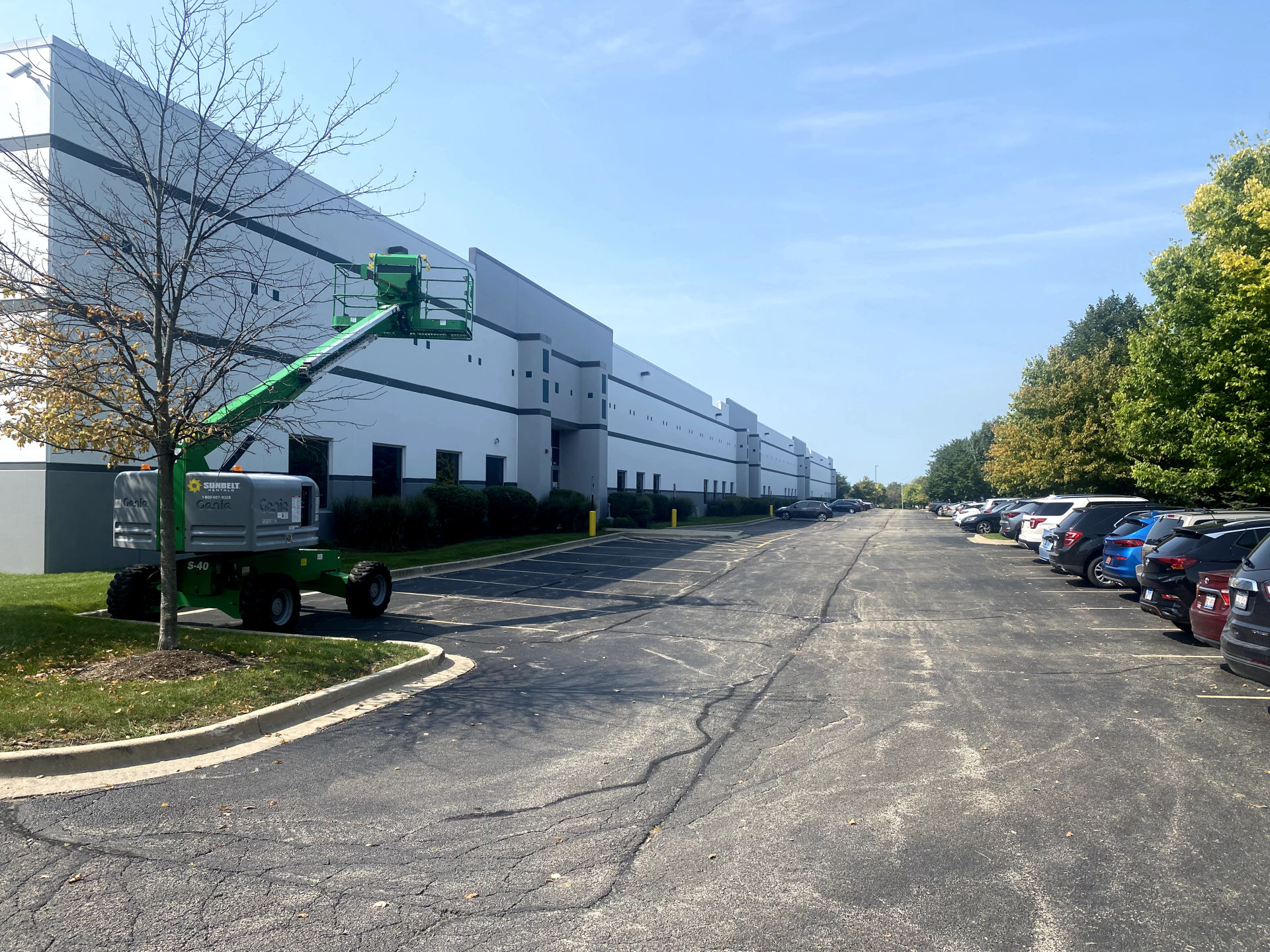 This 96,000-square-foot warehouse in Bolingbrook had faded exterior paint, as it had not been repainted since it was first constructed. As is the case with exterior paint that has been exposed to the elements for years and years, plenty of prep work precedes the actual painting. For this project we used high-pressure power washing to knock down chipped paint and debris. We always ensure the surfaces are completely free of debris and totally dry before we apply primer and paint.