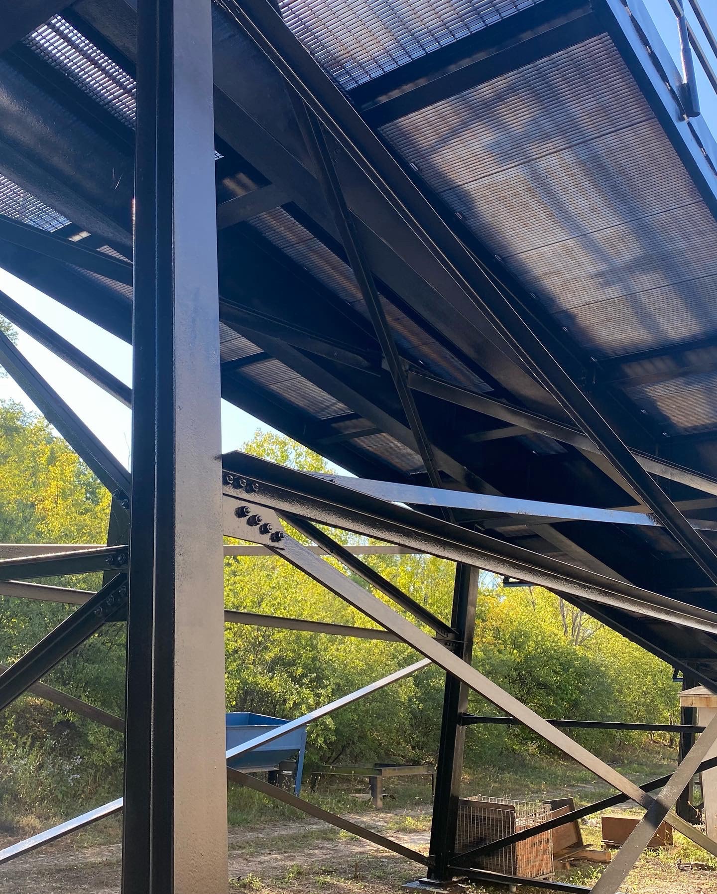 Some exterior jobs require an abundance of prep work before fresh paint can be applied. With this project in Geneva, Painters Inc. removed old paint, dirt and grime from exterior metal surfaces on a factory’s loading ramp. We used vapor abrasive blasting, which is a technique that makes fast work of tough jobs, especially metal surfaces that have years of grime on them.