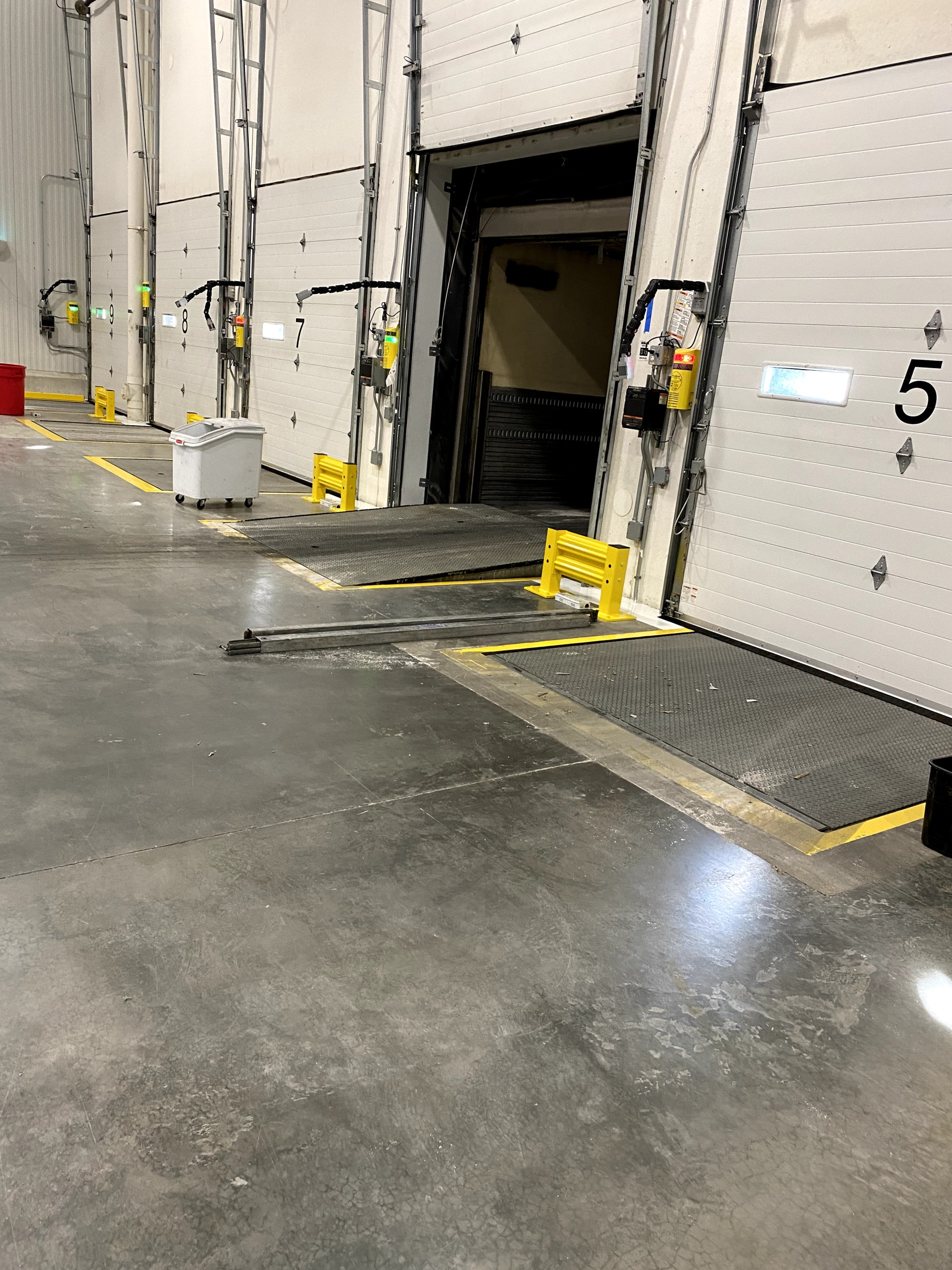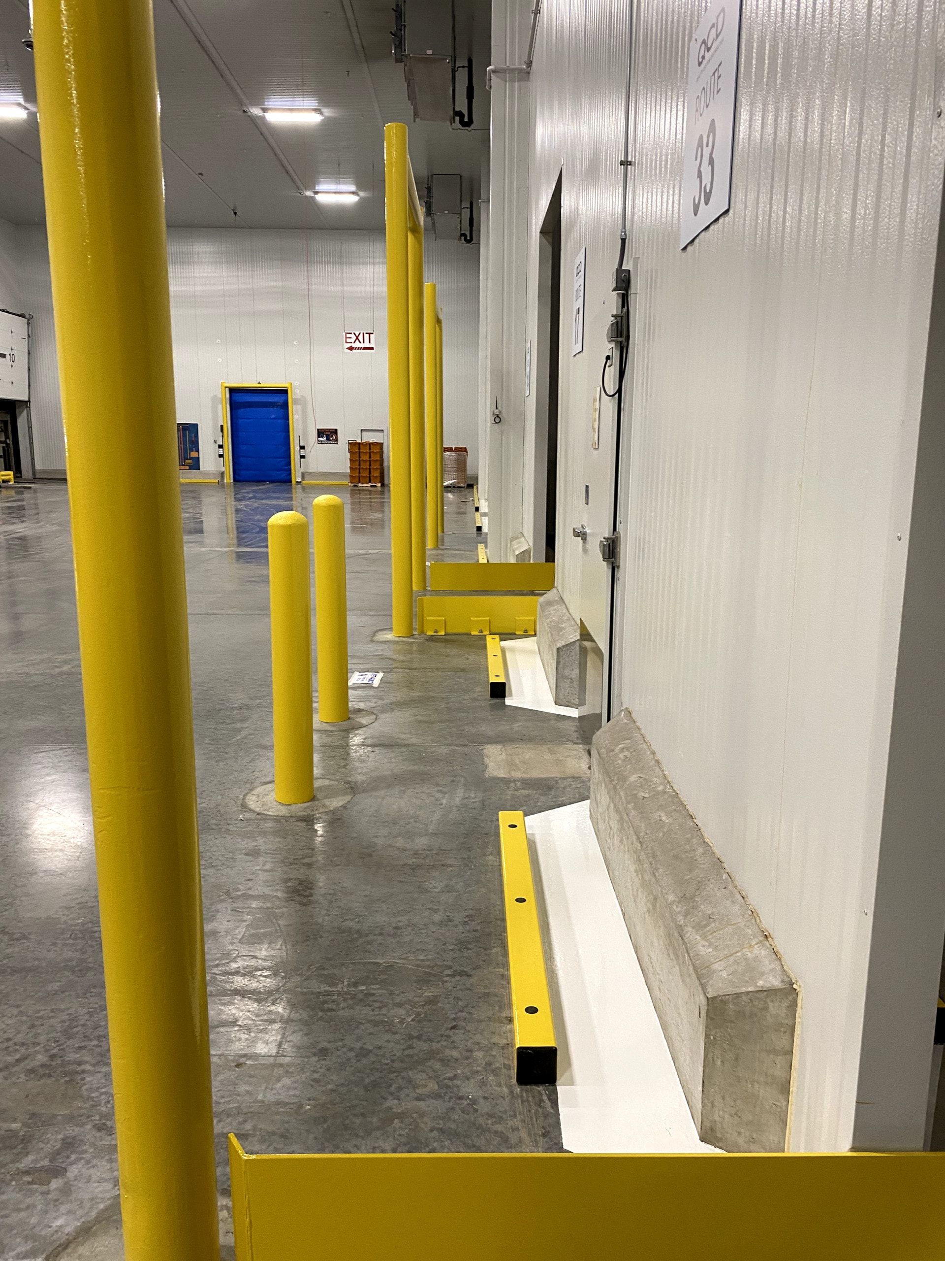 Commercial food warehouses are often bustling spaces where products are constantly being moved by wheeled vehicles, but there is also plenty of foot traffic. These spaces require detailed safety lines that help the flow of traffic, keeping everyone safe while production is unhampered. Painters Inc. took on a week-long, 600,000-square-foot commercial warehouse project in Romeoville where we painted interior safety railing, bollards, dock levelers, yellow safety lines and white safety lines.
